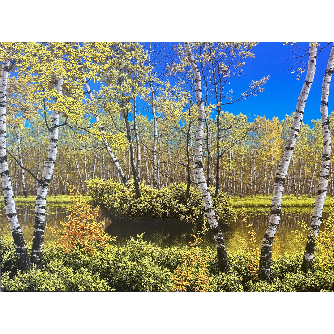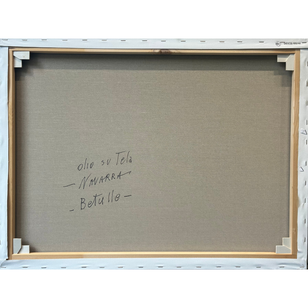 Opera dal soggetto inusuale del maestro Navarra dell’entroterra siciliano. Qui il paesaggio assume i colori e le sembianze dell’autunno. Le fronde si ingialliscono, i colori si fanno caldi, tutto il paesaggio sembra accogliere la luce stemperata della stagione di mezzo in cui i colori vividi dell’estate cominciano a perdere intensità, regalando inedite su mature dall’ocra ai rossi al marrone della terra. La scala cromatica, seppur ridotta nei colori, è ricchissima di toni e sfumature, attraverso l’uso sapiente del chiaroscuro. La luce diviene un tutt'uno con il paesaggio, l’oro sembra innevare l’opera, irradiarla di una luminosità calda. La poetica di quest’opera,ancor più accentuata nei toni lirici, restituisce un Navarra inesplorato. Un grande maestro, ricco di risorse, dal grande spirito indagatore, fine osservatore della natura circostante. L’opera è realizzata con colori ad olio su tela.