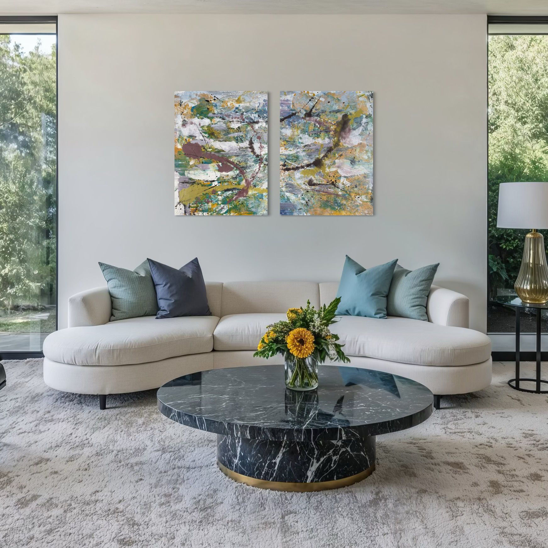 L'opera è stata realizzata in dittico, per tanto è possibile realizzare una composizione di due opere dello stesso formato nate contemporaneamente e pensate come un unico progetto. Create con la stessa tavolozza cromatica, le due opere differiscono nella esecuzione ma si confrontano in un dialogo ideale.