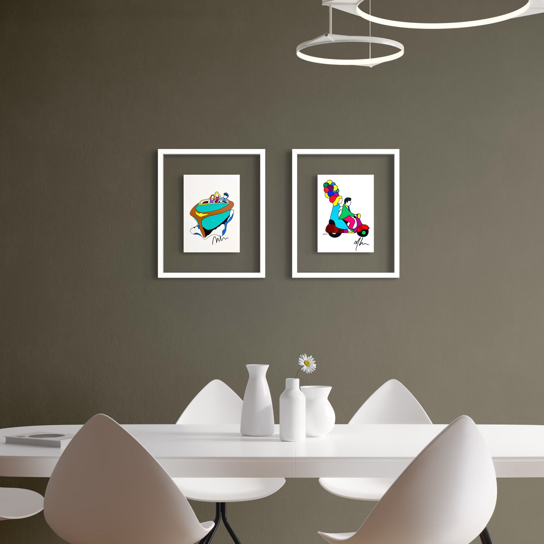 Queste opere rafforzano il legame di Lodola con il concetto di “viaggio felice”, di libertà condivisa, di nostalgia colorata: l’Italia della dolce vita, dei motori, dei sorrisi rubati al tempo. Allo stesso tempo, la serie del circo reinterpreta giocolieri, trapezisti e cavallerizze come archetipi pop, sospesi tra sogno e spettacolo, dinamismo e magia visiva.
