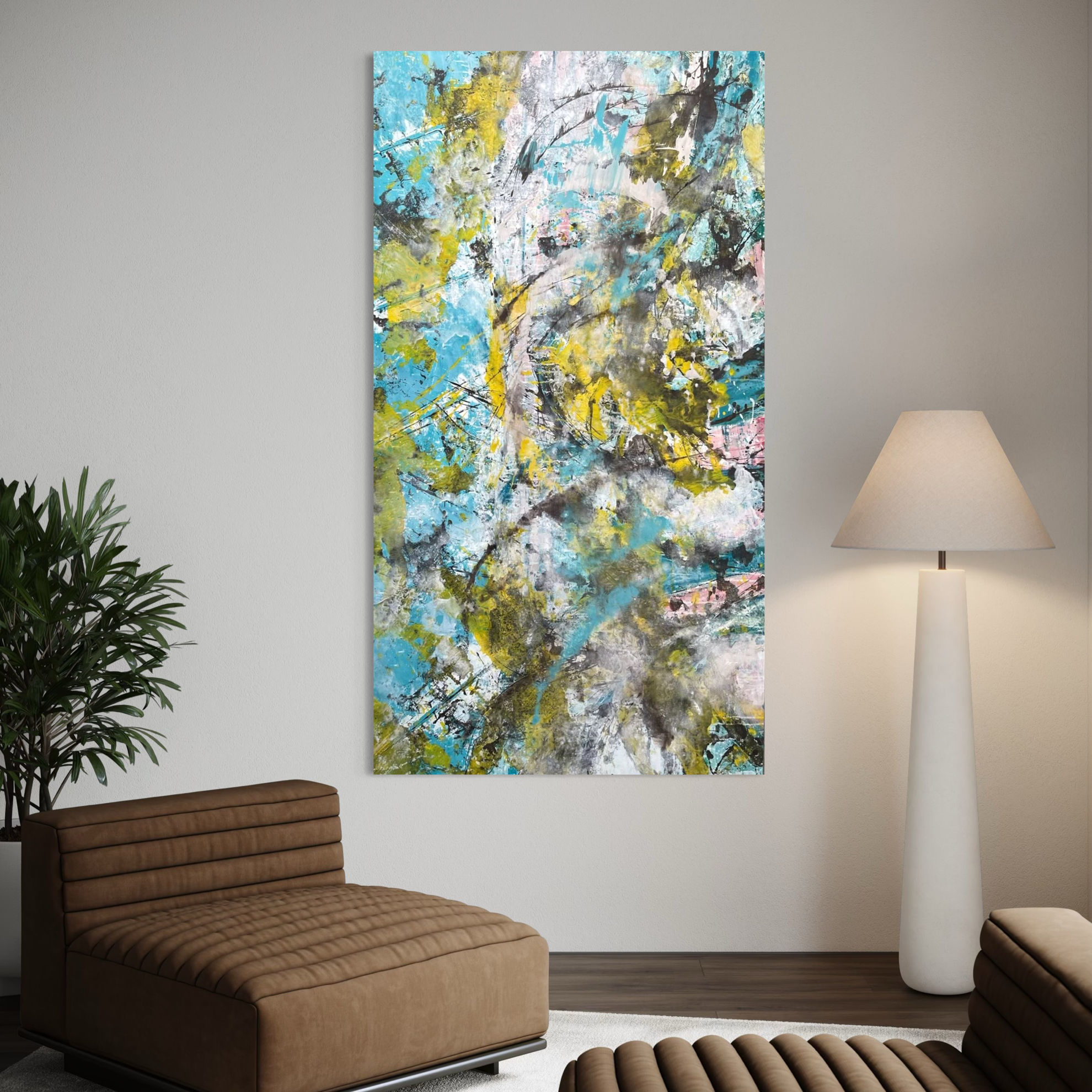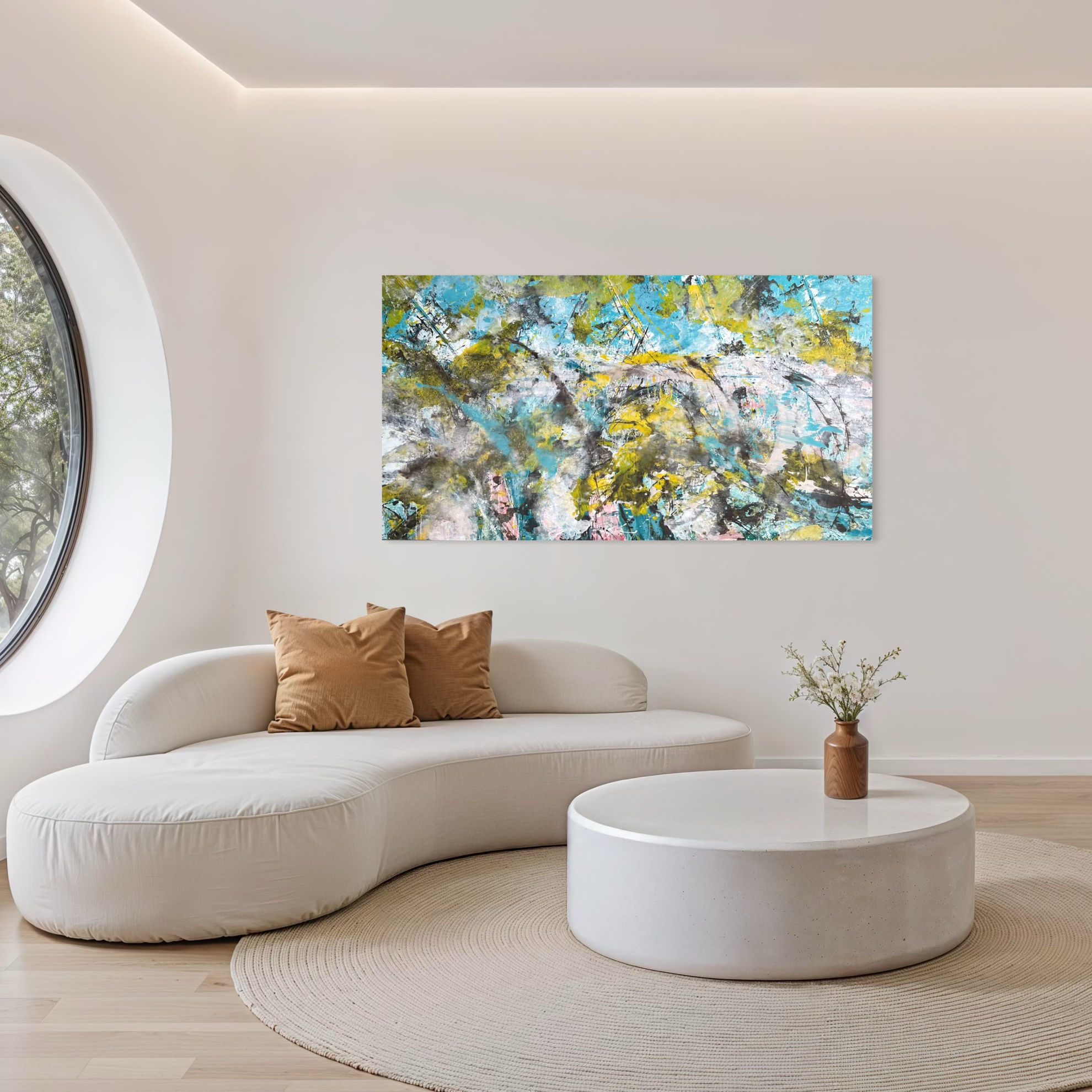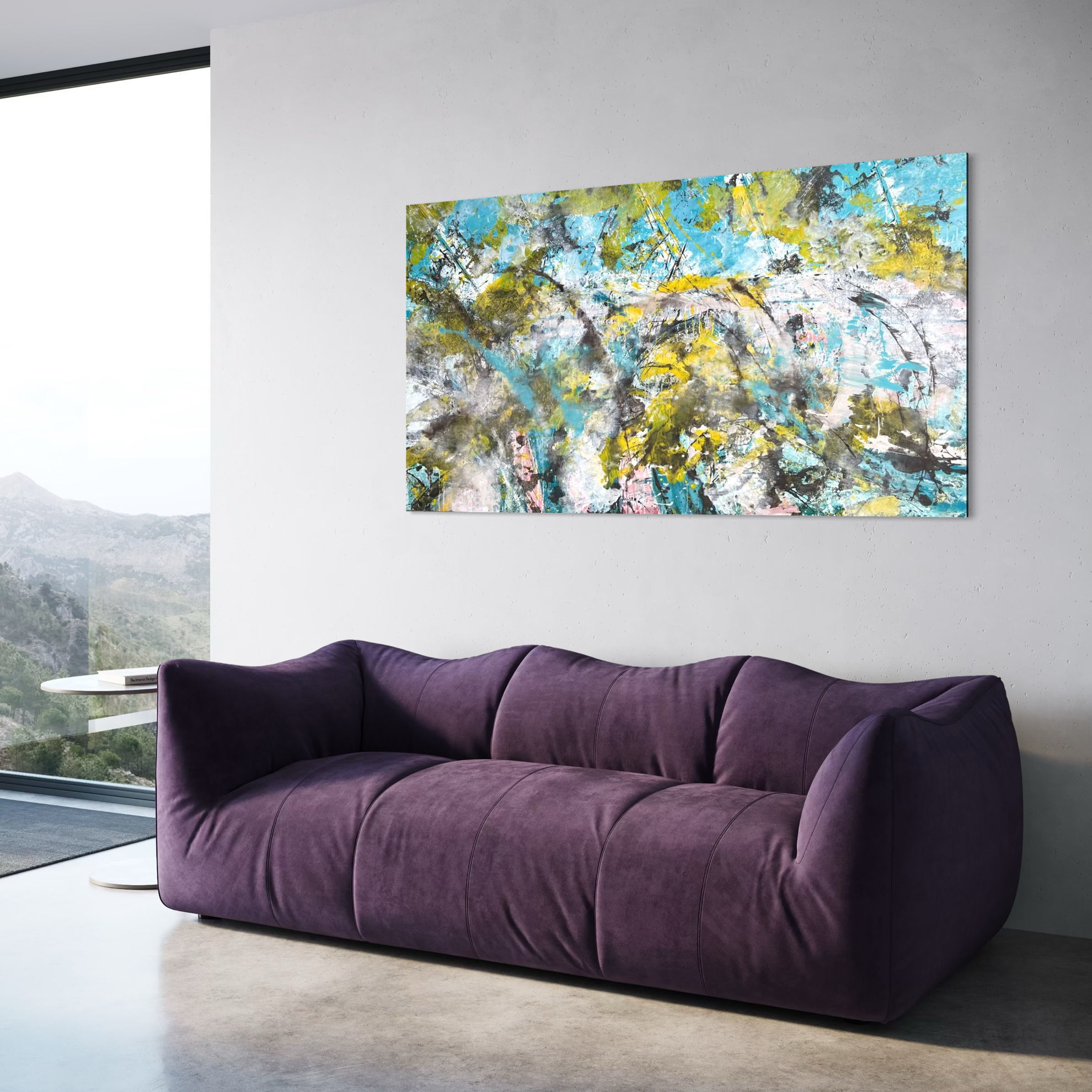 DESCRIZIONE L’osservazione, in questa nuova opera di Matteo Must, si concentra su tinte che rimandano all'aria, in tutte le sue declinazioni di energia, di intense vibrazioni. Su uno sfondo celeste, intenso e vivido, fanno capolino campiture biancastre a ricordare le nuvole e si squarciano raggi di luce come a illuminare la tela, donando una visione astratta e libera dell’artista. Gli ampi spazi, a cui questa grande opera è dedicata, sembrano aprirsi come uma scenografica finestra esaltando gli ambienti ed il contesto in cui verrà inserita.