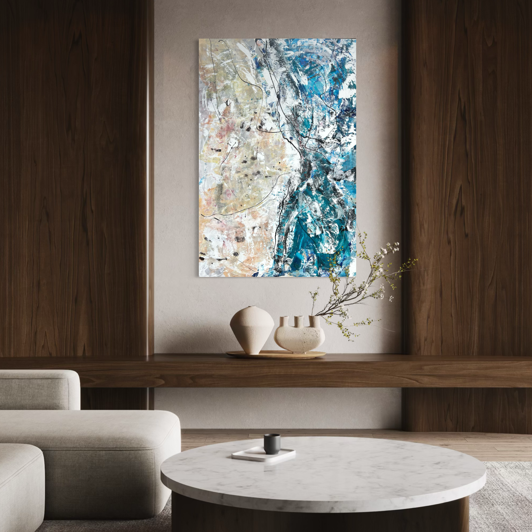 Matteo Must interpreta l’astrazione con un linguaggio personale, in cui il colore si fa espressione emotiva. Le sovrapposizioni e i contrasti cromatici creano un ritmo visivo misurato, capace di valorizzare ambienti contemporanei con eleganza e carattere.