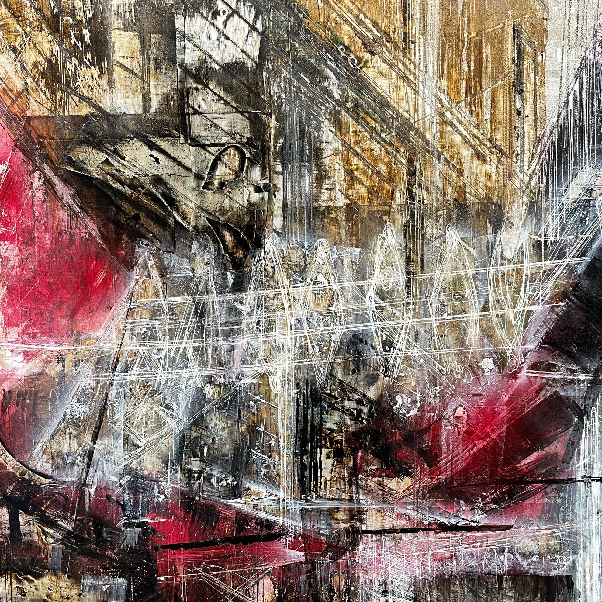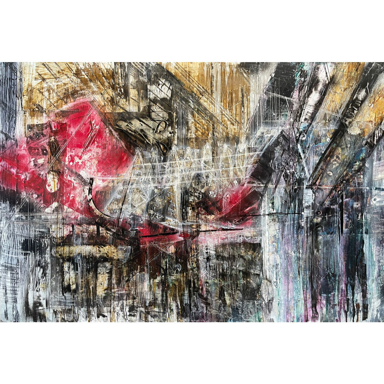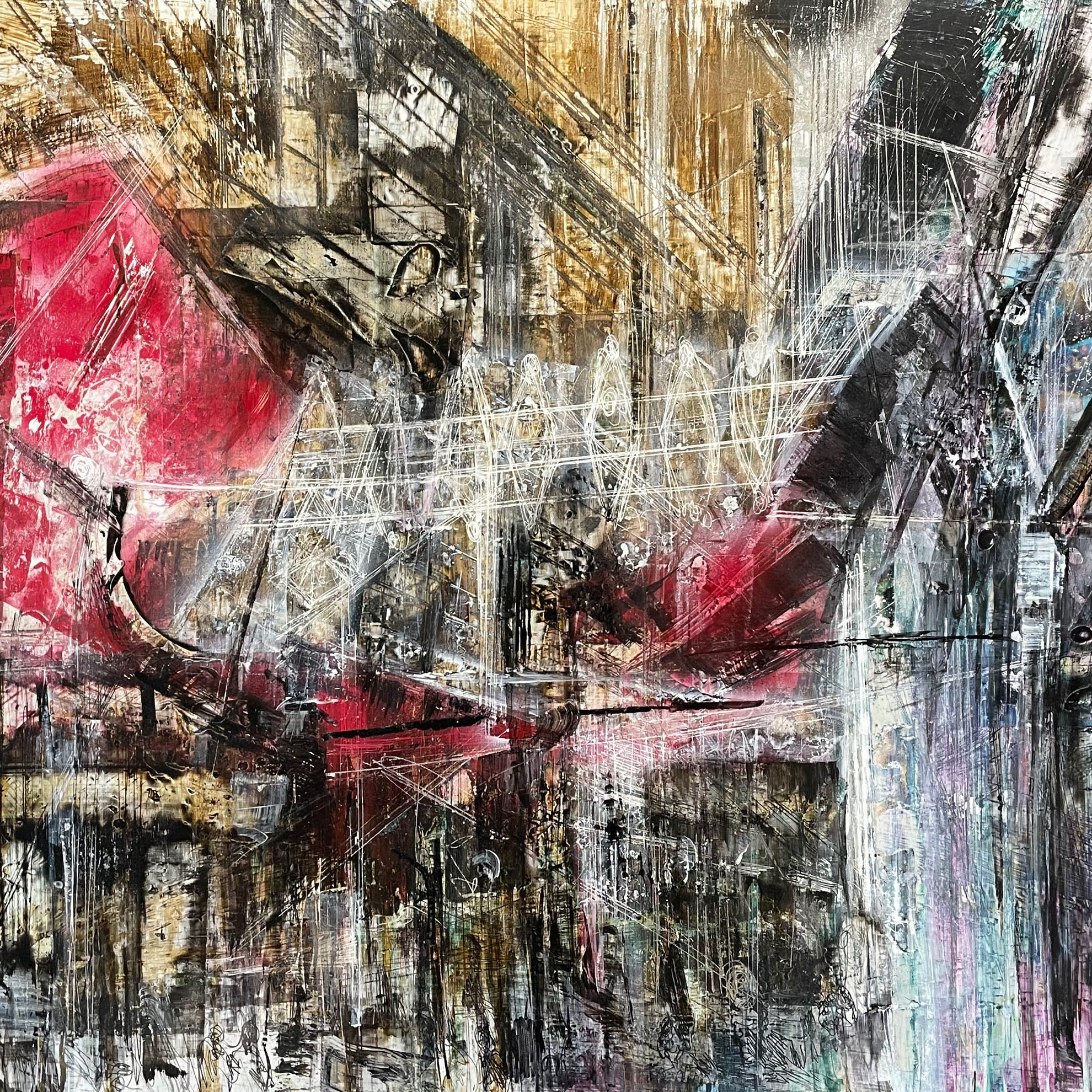 DESCRIZIONE Splendida opera unica di grande formato di Croce Taravella, inchiostro su alluminio applicato su tela di misure 103x71 cm cm dedicata alla Discesa Maccheronai , Palermo. Il dipinto è firmato nel retro, in nero, e riporta la data di esecuzione il 2020.
