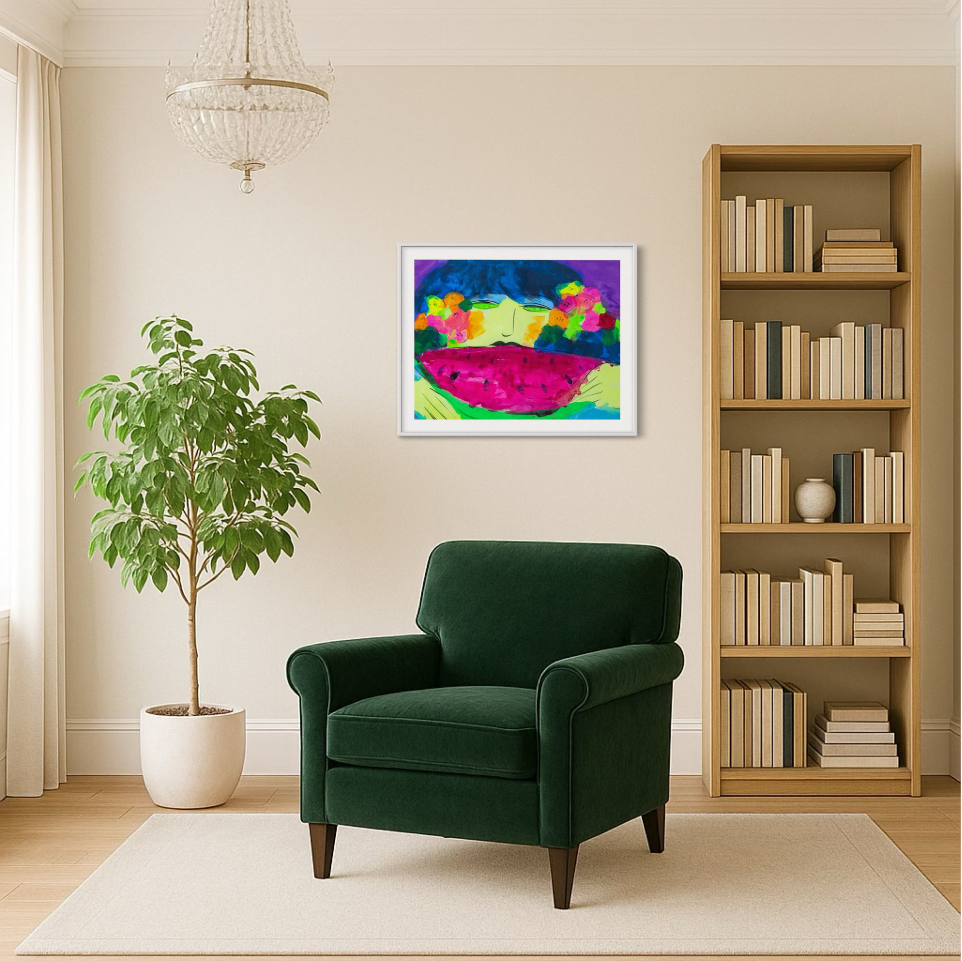 Opera dal forte impatto visivo, con una figura femminile dai tratti essenziali resa attraverso campiture piatte e brillanti di rosa shocking e verde acceso. La spontaneità del segno e la freschezza cromatica riflettono la cifra stilistica immediata e gioiosa di Ting.I dipinti di Walasse Ting hanno da subito attirato l'attenzione della critica, poichè danno ampio spazio alla sfera femminile rapendo la mente dell’osservatore in una catena di cromie, figure, sensazioni essenziali.