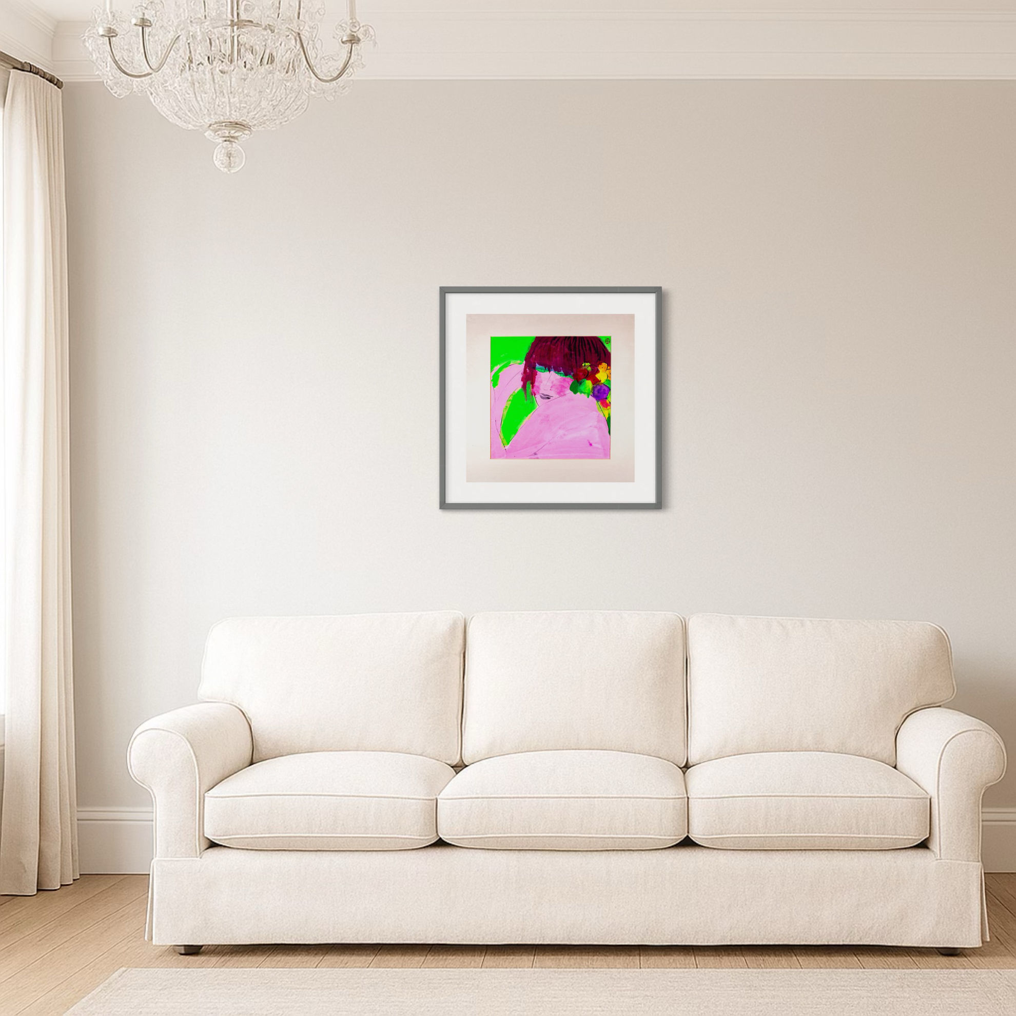 Opera dal forte impatto visivo, con una figura femminile dai tratti essenziali resa attraverso campiture piatte e brillanti di rosa shocking passando dal magenta al verde acceso. La spontaneità del segno e la freschezza cromatica riflettono la cifra stilistica immediata e gioiosa di Ting.I dipinti di Walasse Ting hanno da subito attirato l'attenzione della critica, poichè danno ampio spazio alla sfera femminile rapendo la mente dell’osservatore in una catena di cromie, figure, sensazioni essenziali.
