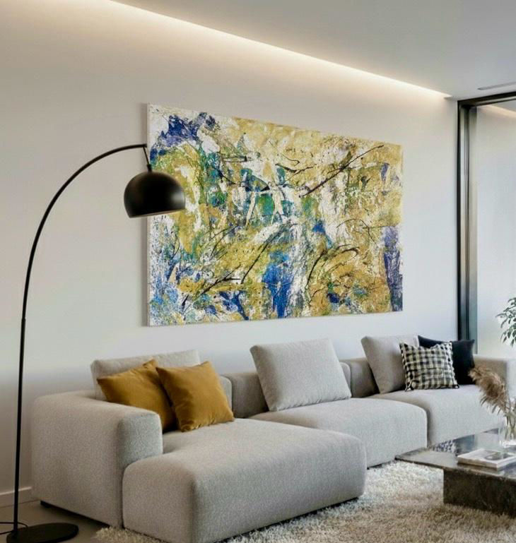 In quest'opera di Matteo Must risaltano tinte che rimandano al tepore del sole, ad una giornata estiva carica di luci, colori e sfumature date come a illuminare la tela, frutto di una visione astratta e libera dell’artista. Molto intenso il risultato, fortemente impattante, scenografico, secondo le corde del giovane artista Matteo Must che, oltre ad essere un promettente artista, vanta già una carriera di scenografo in cui l’opera rappresenta l’elemento protagonista dell’ambiente in cui viene inserita.