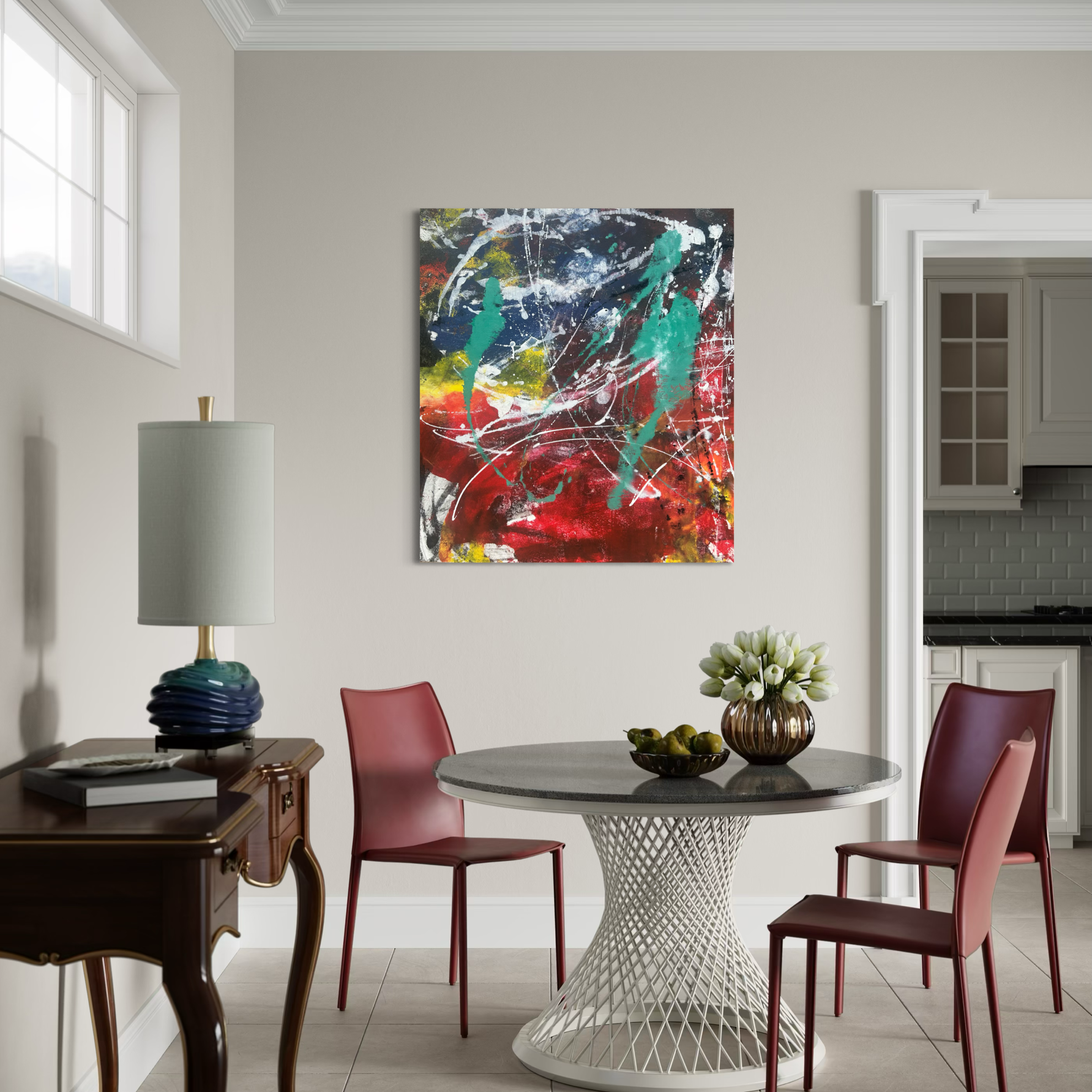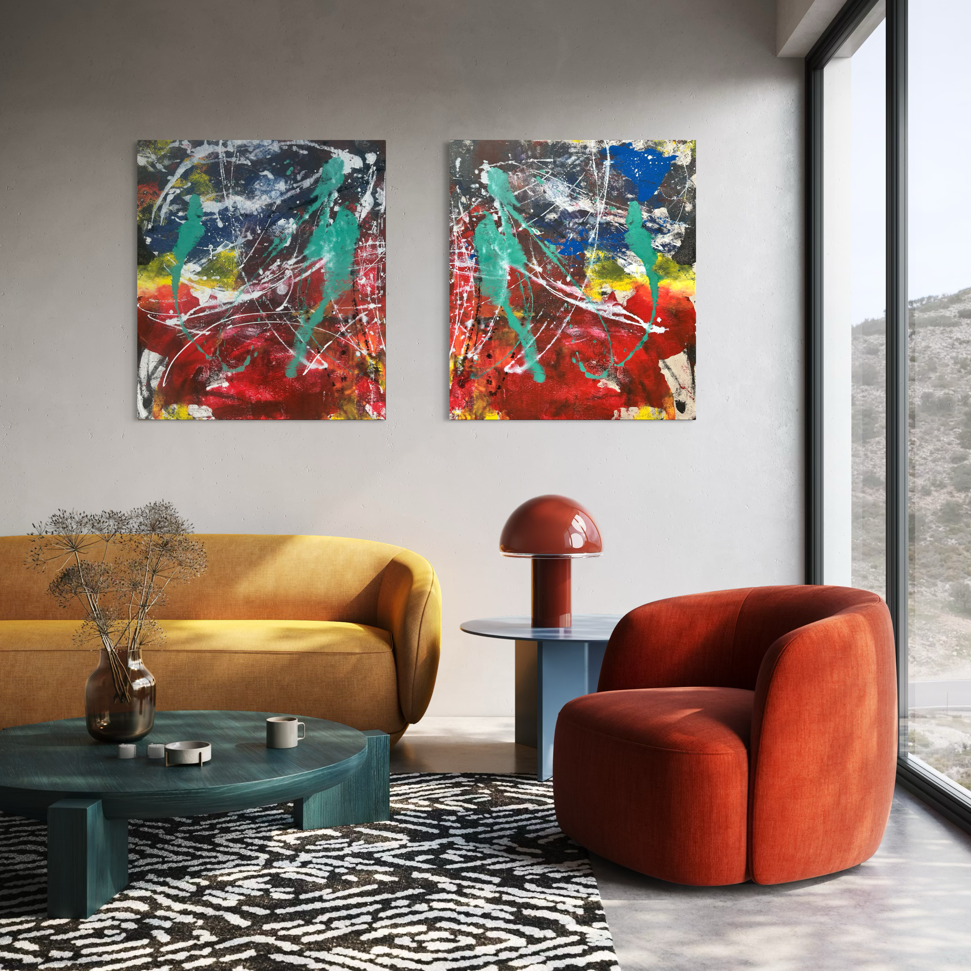In questa intensa composizione astratta, Matteo Must affida a colori intensi e al gesto una narrazione vibrante e contemporanea. Le stratificazioni di acrilico costruiscono una superficie dinamica, capace di restituire profondità e luce. Un’opera che esprime con forza una ricerca pittorica autentica e riconoscibile. L’opera ben si accompagna, eventualmente, al suo gemello, dal titolo omonimo, che racchiude la stessa tavolozza cromatica, presenta le medesime dimensioni e, pertanto, può essere accostato liberamente in un ambiente più grande che lo consenta. La visione di un dittico sarà estremamente suggestiva, impattante come un’opera grande ma pensata dall’artista in un modulo di 2. La soluzione del dittico presenta l’opportunità di distanziare le due opere in base agli spazi disponibili e agli arredi sottostanti. Una soluzione estremamente contemporanea, funzionale, d’impatto, così come richiede il design più moderno. L’opera è realizzata con tecnica mista su tela e non necessita di cornice.