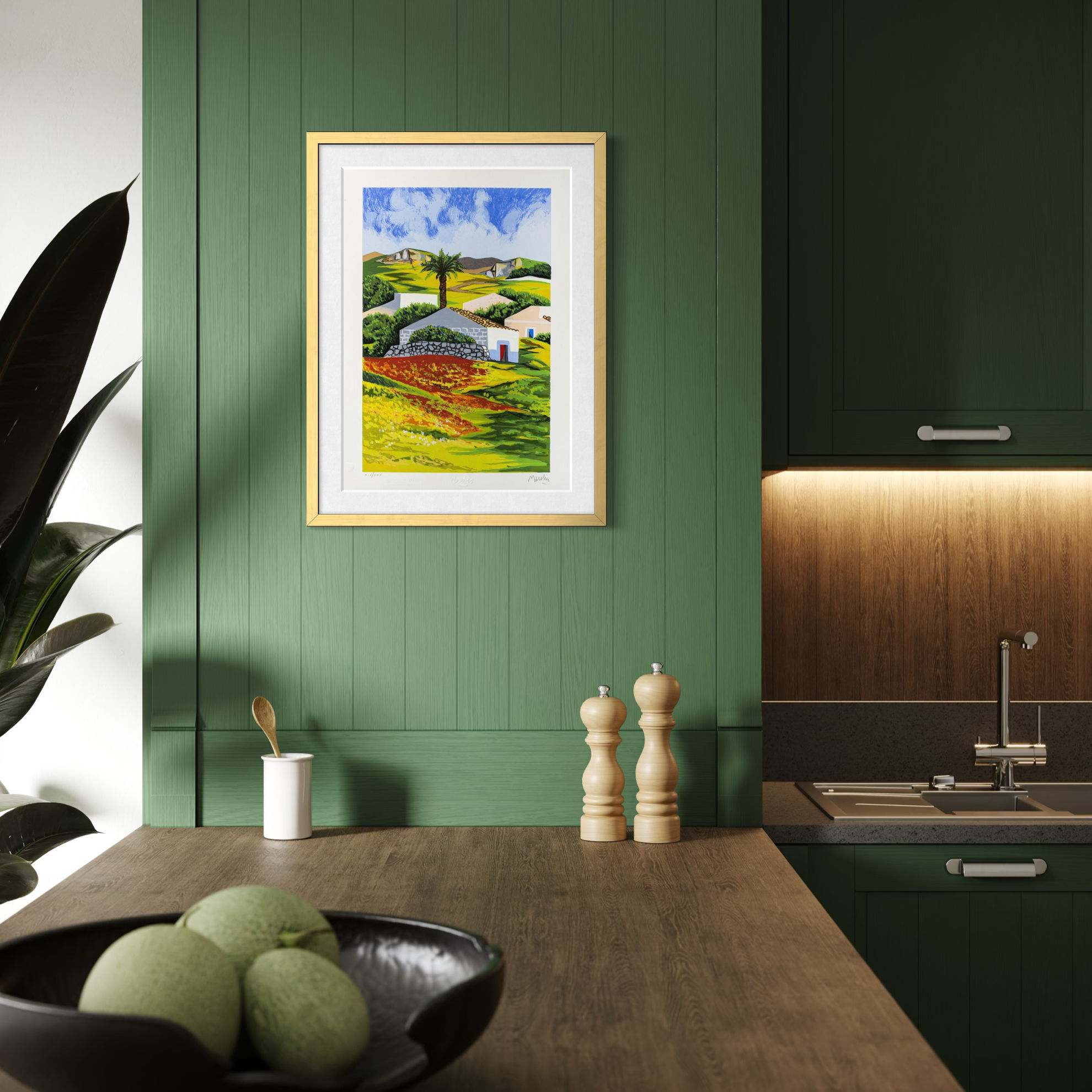 Serigrafia di Renzo Meschis dal titolo “In quel di Pettineo”, degli anni '90. Firmata a matita in basso a destra. L'opera proposta è un multiplo e presenta il timbro a secco dell'artista.
