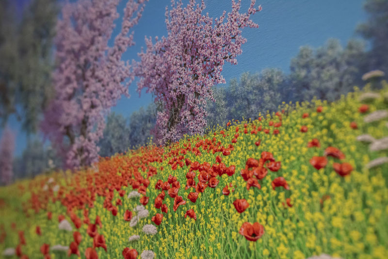 Navarra, siciliano d’adozione, si è innamorato del paesaggio siciliano eleggendolo luogo di residenza e questo amore lo manifesta in ogni pennellata dei suoi lavori. Padroneggiando una tecnica meticolosa con una padronanza senza pari, con il semplice utilizzo di pennelli sottilissimi, riesce a catturare ogni minimo dettaglio, ogni ombra, ogni sfumatura del paesaggio, trasportando lo spettatore direttamente nel cuore della campagna siciliana; ma ciò che rende davvero unica e straordinaria l’espressione artistica di Navarra è la sua capacità di utilizzare una tecnica divisionistica nella rappresentazione figurativa del paesaggio. Le sue pennellate precise e controllate, rivelano un’osservazione attenta, una resa maniacale del dettaglio, una suggestione quasi estraniante che rivela la profondità emotiva e la intima connessione dell’artista con il paesaggio rappresentato. I suoi quadri non sono semplici dipinti ma sono vere e proprie esperienze sensoriali, immersive che catturano lo spettatore rivelando l’essenza stessa della Sicilia, la sua bellezza atemporale.