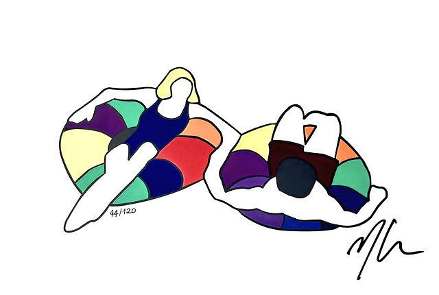 L’ultima serie di serigrafie di Marco Lodola celebra con vivacità e leggerezza l’immaginario iconico che da sempre contraddistingue la sua arte. I protagonisti sono riletti attraverso il consueto stile luminoso e stilizzato dell’artista. Le sagome, dai colori piatti e accesi, si stagliano su fondi neutri o intensamente saturi, evocando movimento, energia e spensieratezza.