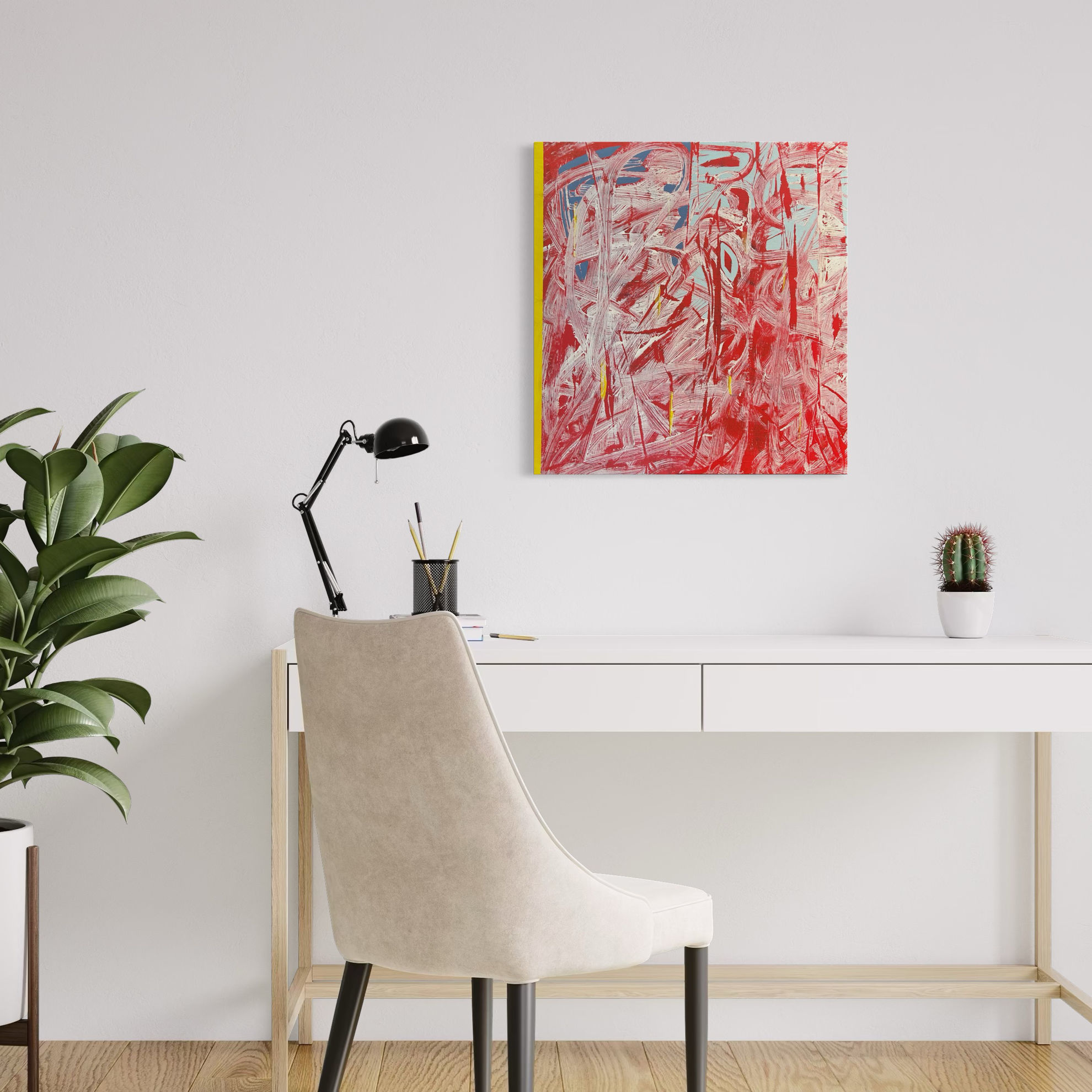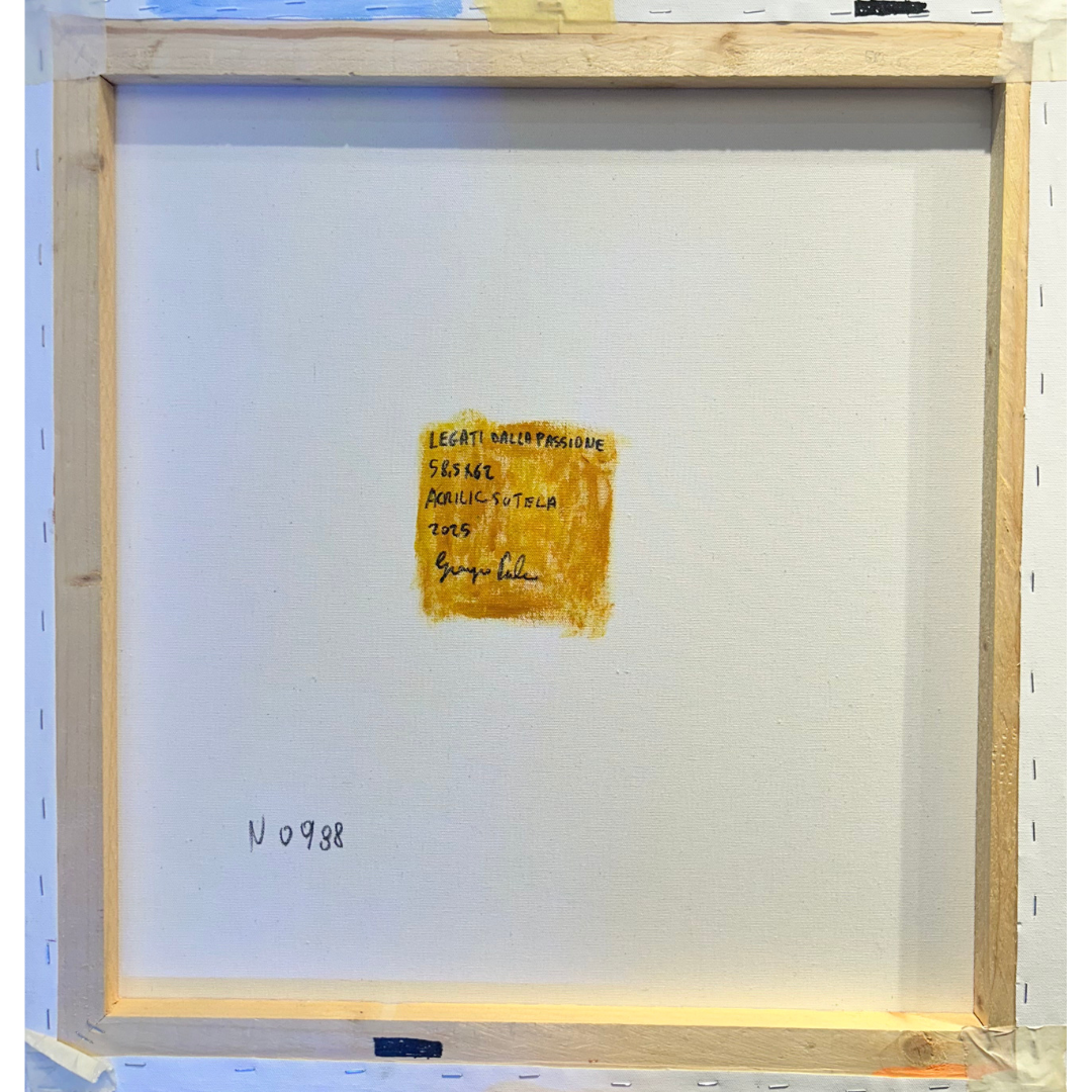 Le forme astratte e le figure indistinte potrebbero riflettere la natura sfuggente dell'identità e dell'esperienza umana. è un'opera originale e vibrante che esplora nuovi temi e tecniche artistiche. La tavolozza di colori audace, le forme fluide e la composizione dinamica creano un'esperienza visiva coinvolgente e stimolante. L'opera invita lo spettatore a riflettere sul rapporto tra uomo e natura, sulla complessità dell'esistenza umana e sulla natura stessa dell'arte. Opera realizzata con colori acrilici su tela.