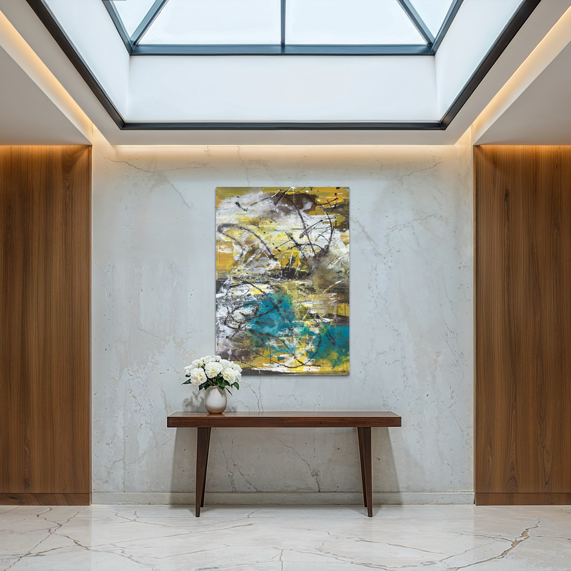 Tecnica mista su tela (acrilici spatolati con polveri e pigmenti) appartenente alla serie degli astratti di Matteo Must, creati in esclusiva per raffaellogalleria.com. L’opera di Matteo Must è una protagonista vivace capace di vestire una parete, di renderla completa nell’assoluta mancanza di oggetti di arredo o di complementi: è un’opera che basta a se stessa per rendere caldo e accogliente un ambiente.