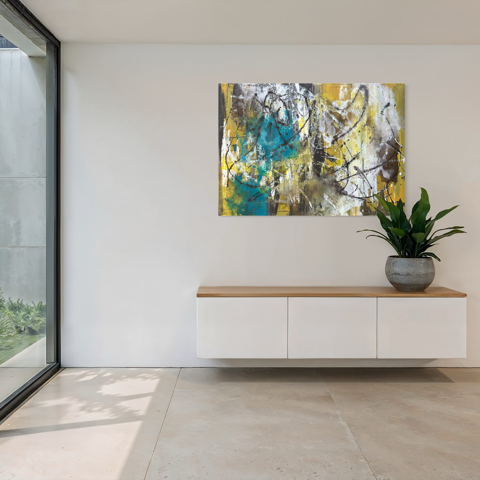 Immaginatela perfettamente ambientata sia in un salone, in senso verticale fra due grandi vetrate, o orizzontale sopra un divano o un mobile sparecchiatavola. La si può inserire, anche, in camera da letto, come moderno capezzale, capace di sovrastare una testata di letto, conferendo grande personalità e un gusto contemporaneo a tutta la stanza. Opere rivolte a chi ama arredare il proprio ambiente in chiave contemporanea e non convenzionale, le tele di Matteo Must sono autentici capolavori di originalità e buon gusto.
