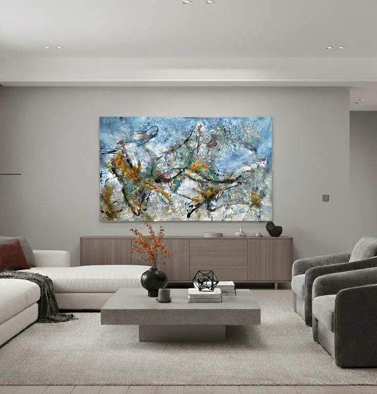 In quest'opera di Matteo Must, i colori si ingentiliscono, si stendono sulla tela come raggi solari in una giornata giornata estiva, carica di luci, colori e sfumature. Le linee si intrecciano, cosi a rimandare ad emozioni e vissuti di giornate passate. L'opera di grande formato si adatta ad ampi spazi a cui questa grande opera, esaltando gli ambienti ed il contesto in cui verrà inserita.