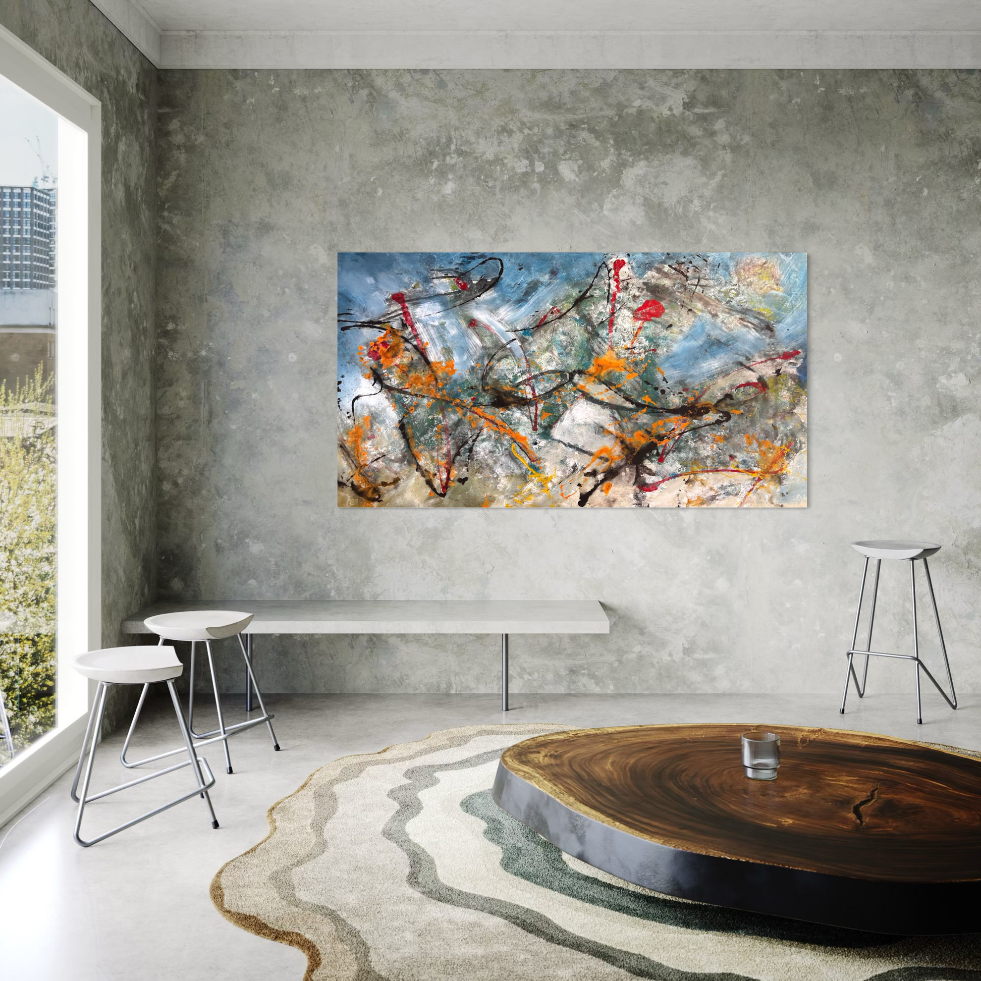 Quest'opera è una finestra aperta sui nostri ambienti verso spazi infiniti capace di donare profondità all’ambiente e uno sguardo incantato, una nota di grande impatto visivo, derivantedalla carriera del giovane artista anche come scenografo.