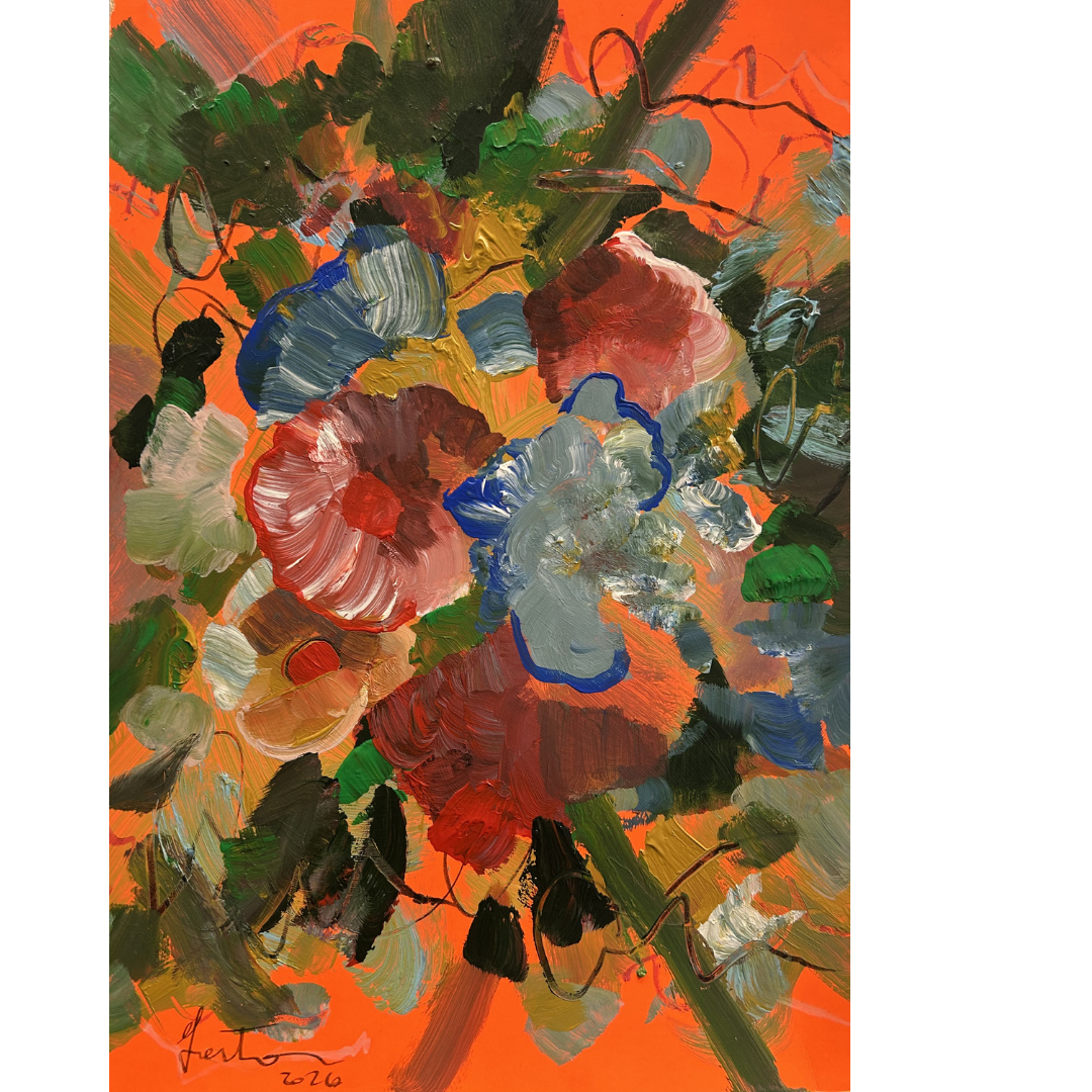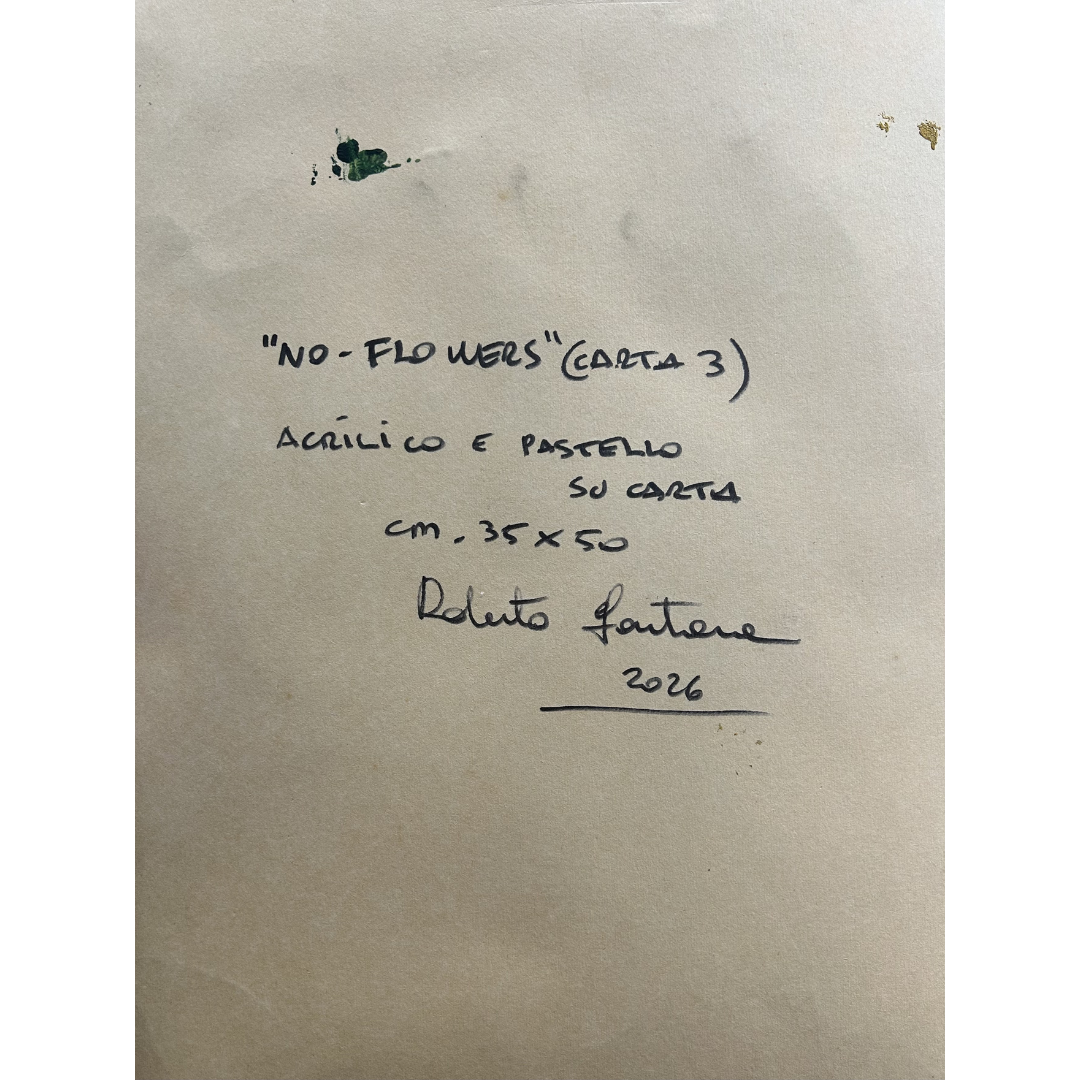 Le forme dei diversi fiori hanno da sempre affascinato l'artista, che ammirava in silenziosa adorazione le nature morte, soprattutto quelle pitture del '600, quei fiori dettagliati dei fiamminghi e quei colori così naturali e innaturali allo stesso tempo. La serie "No-Flowers" prende spunto dal fiore ma ovviamente non è uno studio sui fiori, e proprio da questo sottilissimo concetto che prende vita il suo titolo provocatorio e rende il dipinto un quadro moderno astratto.