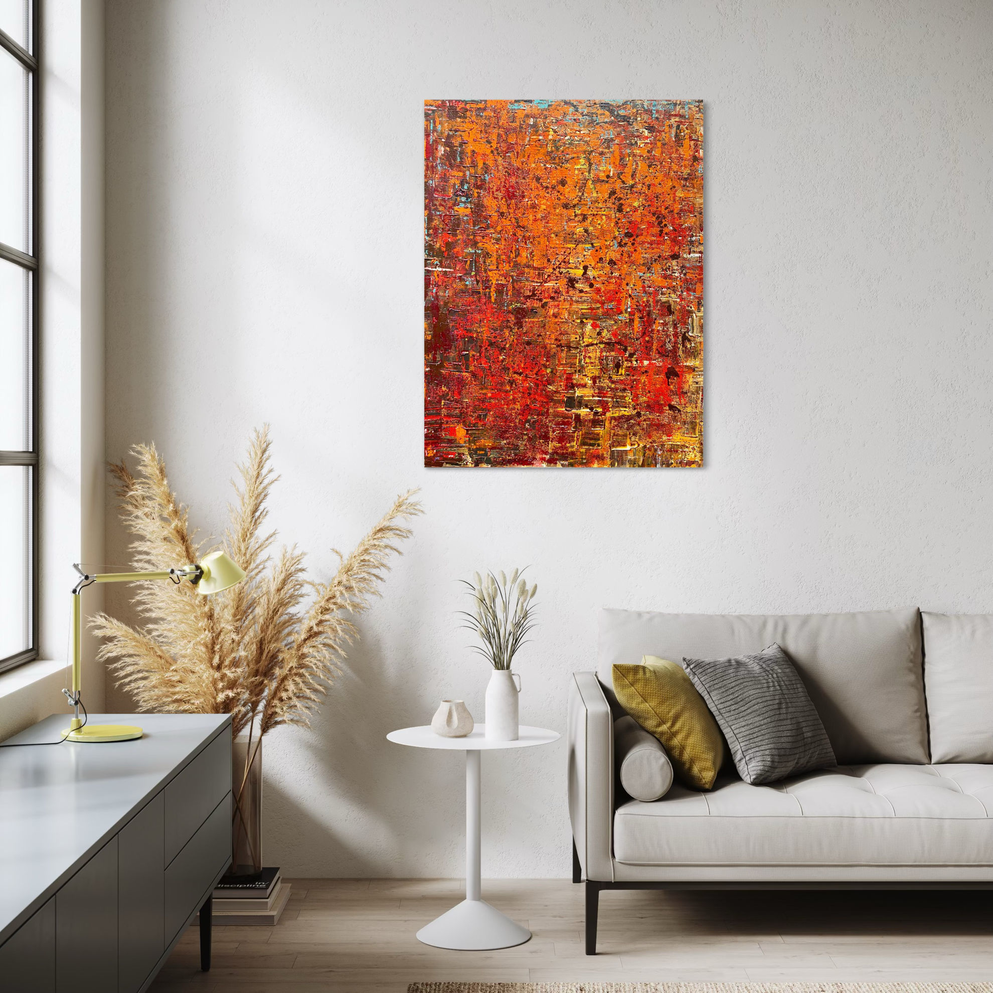 Opera appartenente alla nuova serie Natura silente, la natura si manifesta come radice primordiale, forza originaria che pulsa sotto la superficie. Le tele si caricano di una materia viva, quasi tattile: strati di resine e cementi si intrecciano con gessi acrilici, evocando paesaggi interiori più che esteriori. Non è la natura osservata ma quella sentita, respirata e immaginata, dove i colori si fanno magma interiore e l’istinto dell’artista plasma forme in bilico tra caos e armonia.