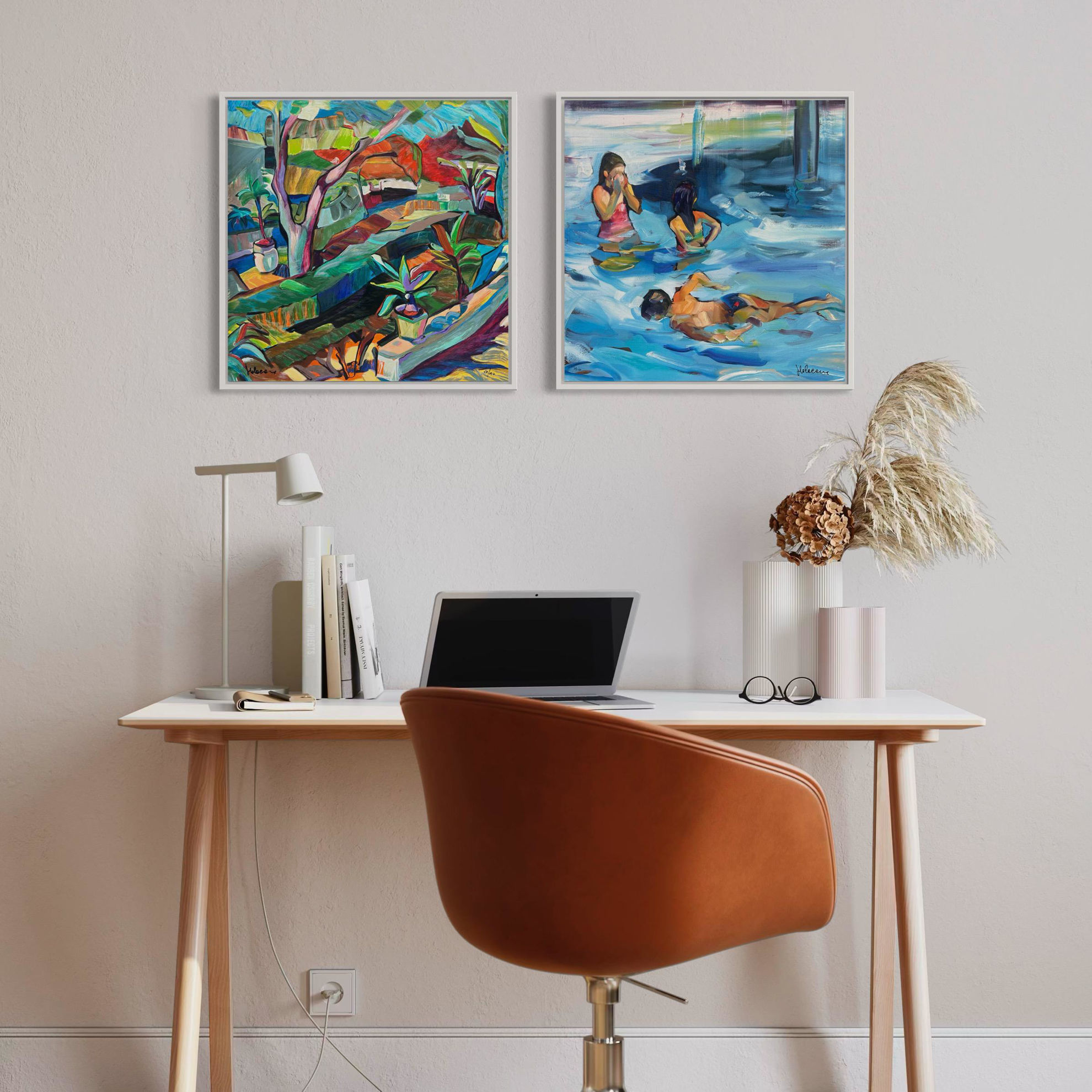 In questo ciclo di opere, l'artista, dipinge con una materia pittorica che rappresenta una luce leggera, piuttosto che il pieno sole: nelle ombre tanto sottilmente colorate da non essere neppure leggibili in quanto ombre, mostra un’attenzione particolare alla luce e al colore che rende pieno e vibrante di tonalità intense. C’è uno zampillio di colori che rimbalza sulle palme, nella precisa sensazione che questo sia un istante sperduto nello spazio e nel tempo.