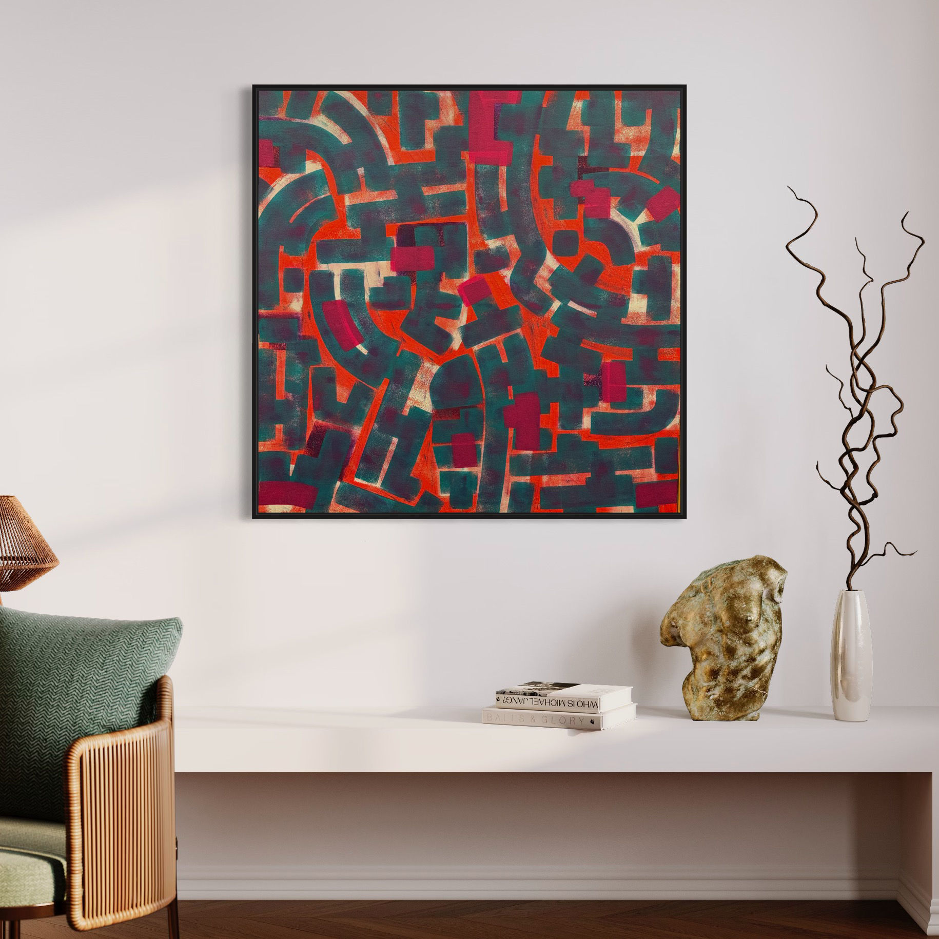 Il dipinto, appartenente alla serie “Metropolis”, raffigura la veduta urbana della città di Pechino vista dall'alto, una prospettiva ideale rappresentata dall’artista in chiave favolistica e poetica. L’opera, infatti, è caratterizzata da una notevole semplificazione concettuale, da una particolare tecnica esecutiva, sia nel disegno che nella stesura del colore, e dall’impianto prospettico e compositivo d’insieme. L’opera, 80x80 cm, è realizzata con colori acrilici su tela.