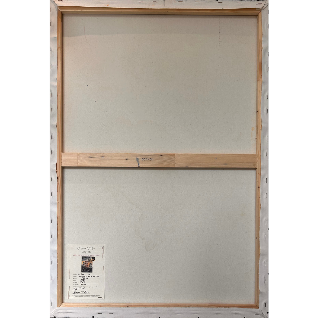 "Li trasformo in dipinti che sembrano uscire dalla mia memoria. I contorni indefiniti, dove i colori si fondono, creano un’atmosfera sospesa e malinconica. E’ così che la mia arte diventa un ponte tra il presente e un passato che non smette mai di sussurrarmi all’orecchio."
