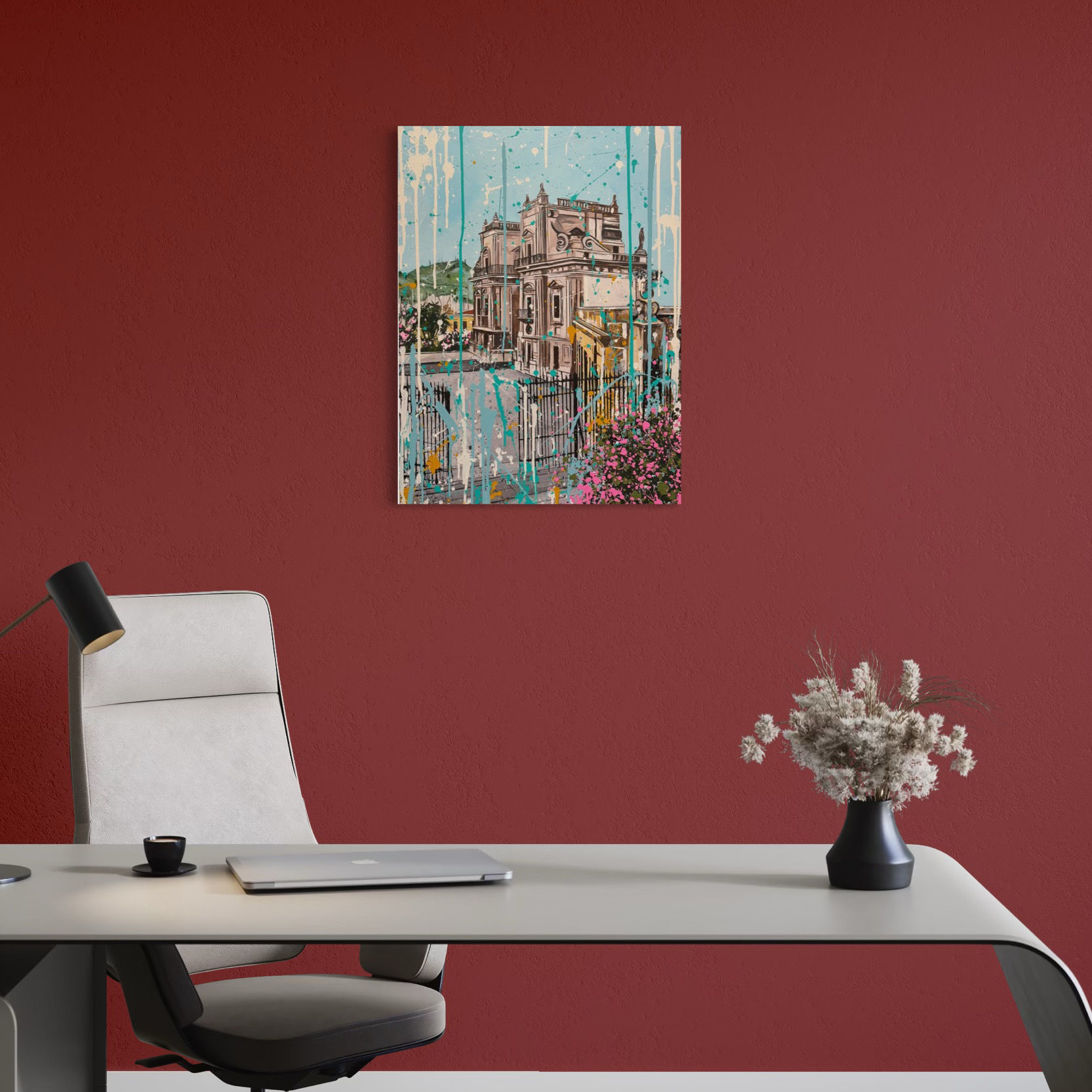DESCRIZIONE L'architettura urbana è una componente fondamentale della poetica pittorica di Marco Favata. Il paesaggio urbano della sua città, Palermo, è il punto focale dell’interesse artistico, di osservazione ed ideazione successive in studio. Favata, da sempre interessato allo studio architettonico degli edifici e degli spazi all'interno degli ambienti urbani, dedica particolare attenzione alla sua Palermo, ritraendo scorci, vedute, facciate con angolazioni inedite, esito di una elaborazione pensata e sedimentata dallo sguardo di artista, formato da un percorso accademico di architettura. In quest’opera, Marco Favata ritorna su un soggetto per lui significativo: Porta Felice. La storia di Porta Felice è legata a quella della città e delle sue evoluzioni nel tempo. È una struttura architettonica sopravvissuta nei secoli, un simbolo della città. Porta Felice è una delle antiche porte di accesso alla città di Palermo, costruita nel 1583, il suo nome deriva da un’iscrizione che invita la gente a entrare “felice” in città. Nel corso dei secoli, è stata testimone di molti eventi storici e oggi è un’iconica attrazione di Palermo, con la sua architettura barocca e la vista sul mare. L’artista la rappresenta con uno sguardo sempre rinnovato, con un punto di osservazione laterale, obliquo, meno convenzionale nel suo naturale approdo al mare. Qui Porta Felice è la testimonianza di una costruzione architettonica opulente che resiste nei secoli, memore di antichi fasti. L’elemento naturalistico degli oleandri, gentili e romantici nell’apporto di colore alla composizione, rimanda ad una contrapposizione realistica della città: pietra e piante, costruzione e natura; due forme antitetiche che si completano e si fondono nella sostanza strutturale di una città sfaccettata, contraddittoria, ambigua. Lo stesso dualismo si rintraccia specularmente nella complessità dell’animo di Marco Favata: attento e fedele osservatore di costruzioni architettoniche e, nel contempo, visionario ideatore di contesti urbani in cui realtà e immaginazione si intersecano fra loro, in una elaborazione rispettosa ma sognatrice. L’opera rivela il trascorrere del tempo, la sovrapposizione dei secoli, le sue tracce sui resti delle Porte, risultato del processo naturale di invecchiamento, con un esito finale di una bellezza unica e intrinseca.