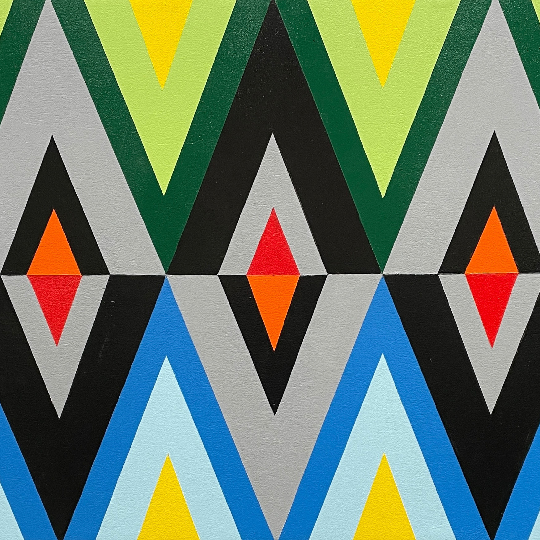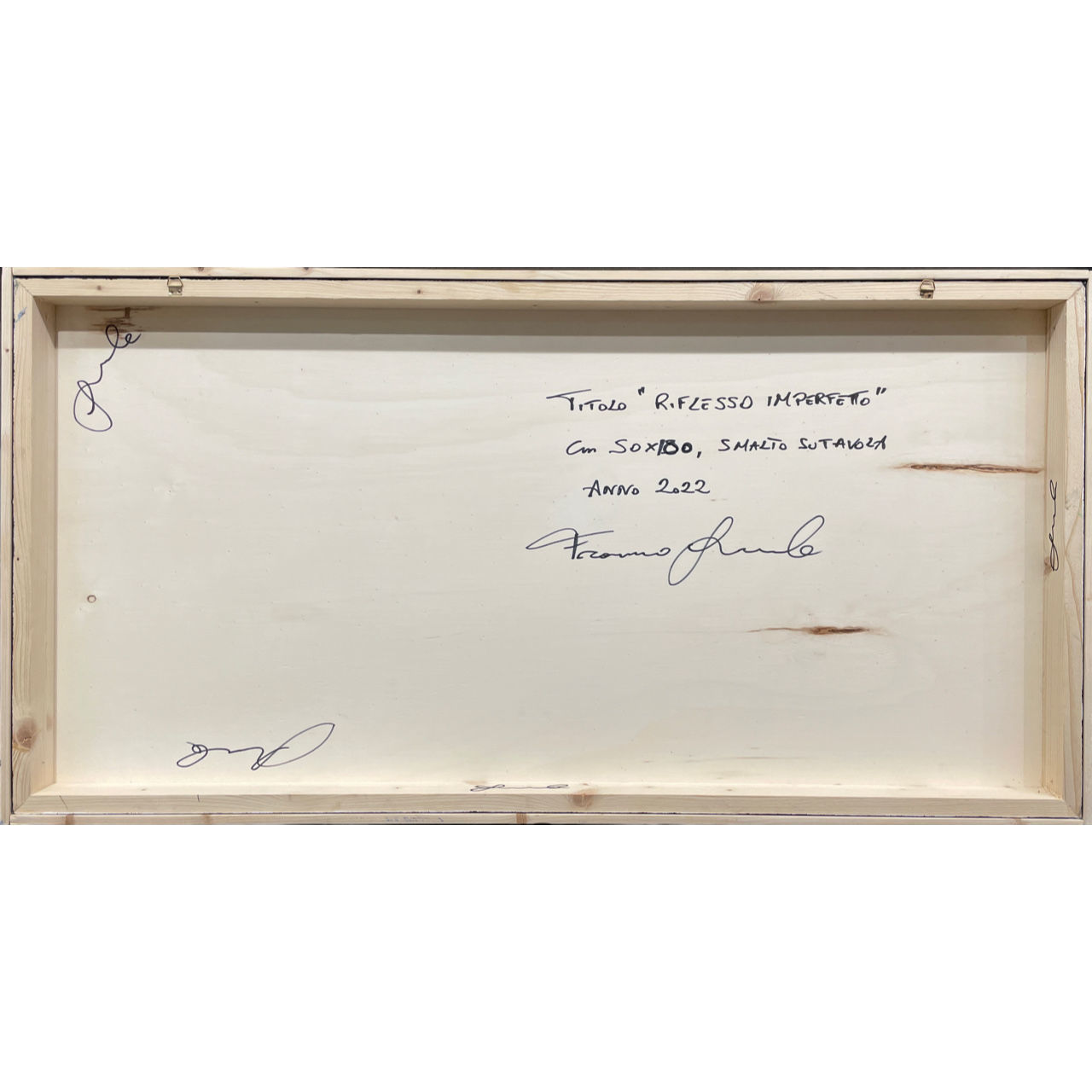 "Il riflesso è per i colori quello che l’eco è per i suoni" da una citazione d Joseph Joubert. In questo quadro siamo di fronte ad un riflesso imperfetto; infatti, la parte superiore è diversa da quella inferiore, e come guardarsi in uno specchio ma, invece, di vedere il proprio volto, vediamo l’immagine del nostro io interiore. Un immagine diversa da quello che si riesce a vedere semplicemente con gli occhi ma che riusciamo a percepire solo attraverso il profondo ed è lì che lo svelamento avviene. La poetica volge l’attenzione ad una continua ricerca di armonia ed equilibrio tra geometria e colore, come riflesso di uno stato d’animo. I quadri sono introspettivi: sono delle sensazioni, sono delle emozioni, sono viaggi interiori che fuoriescono attraverso le geometrie e i colori. La forza di ogni colore, abbinato alla geometrie, da vita a delle sensazioni strettamente correlate all’impatto che essi producono in chi osserva.