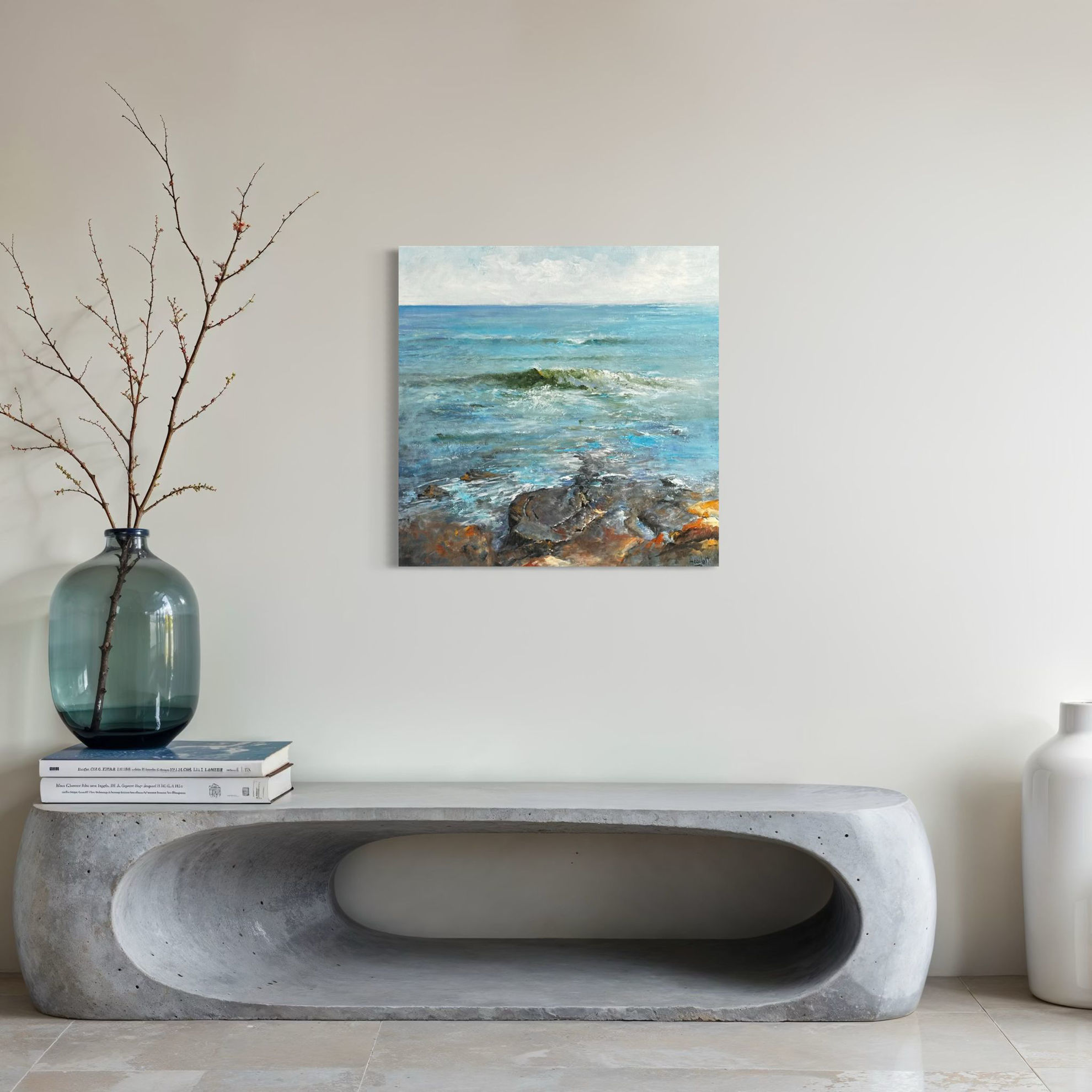 In quest’opera dal titolo scogliera, l’artista racconta dettagli di un paesaggio della sua Sicilia. Uno stile poetico evocativo delicato in cui gli olii sembrano prestarsi a tradurre l’intensità emotiva di questa narrazione. Il mare, i suoi colori sono i soggetti protagonisti della sensibilità pittorica dell’artista. Il cui tratto sfumato lo rende profondamente riconoscibile. Artista di fama, dalla carriera ricca di esperienza e riconoscimenti, Giacomo Angiletti mantiene il suo focus su una visione lirica e contemplativa.L’opera è realizzata con colori ad olio su tela.
