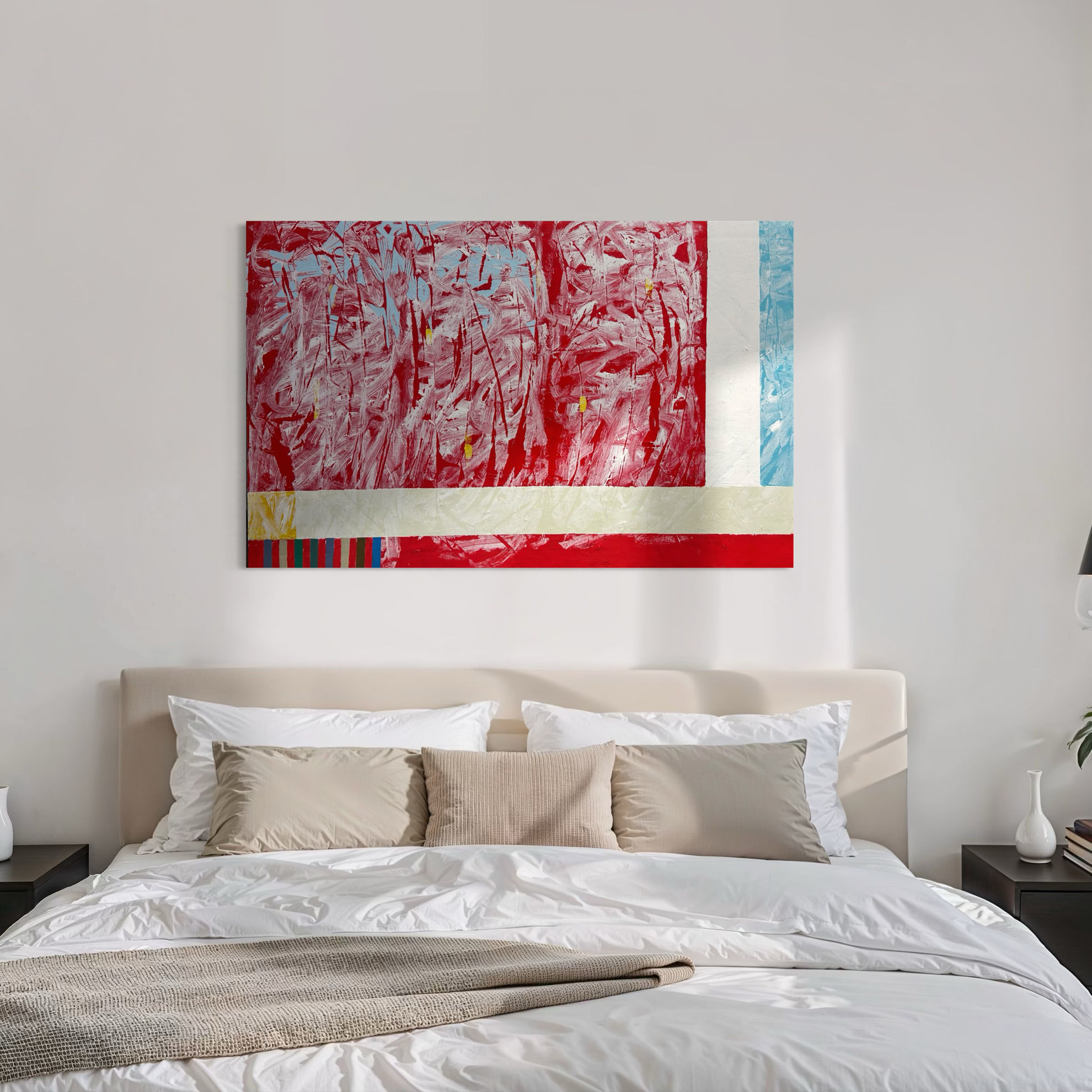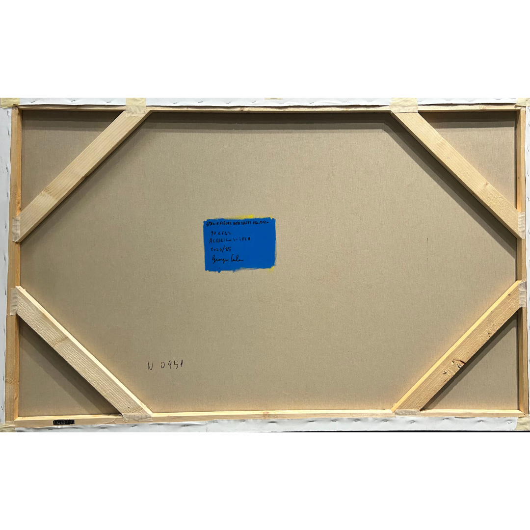 Giorgio Puleo, con la sua maestria artistica, crea un vibrante connubio di colori e forme attraverso la sua tecnica mista su carta. Utilizzando tinte accese, i suoi disegni esplodono con vivaci sfumature e dettagli incisivi. L'opera si estende orizzontalmente, catturando la vastità e la bellezza della natura con pennellate che trasudano vitalità. I toni vivaci o il contrasto in rosso e blu evocano emozioni e narrazioni uniche. L'opera è in acriico su tela .