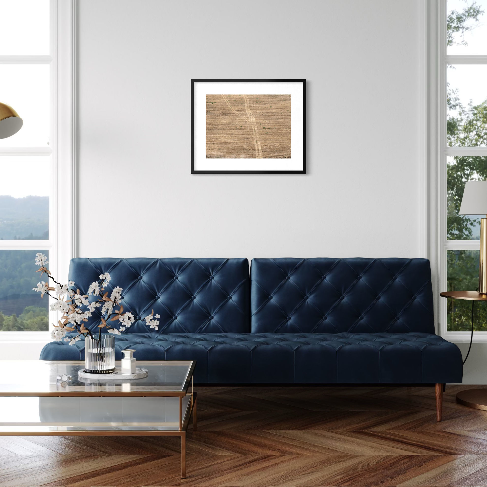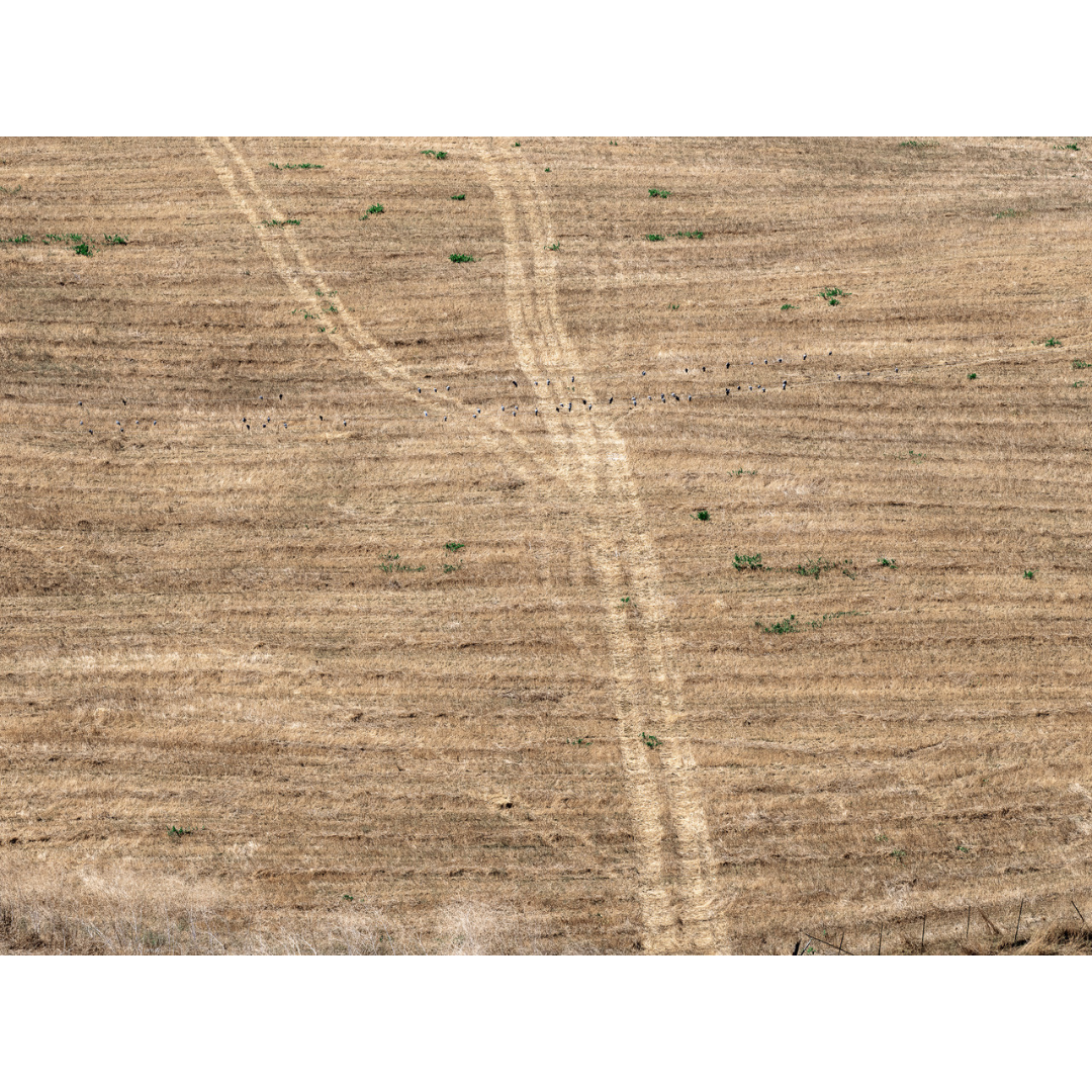 L'opera rappresenta un campo dopo la mietitura; si vedono i solchi lasciati da un trattore, sbuffi di cespugli e si possiamo notare i piccioni, appollaiati ignari sui fili elettrici. Attraverso i colori dei pigmenti classici, l'artista ha conferito ad ognuno di essi la risposta alla ricerca sull'archetipo, cercando connessione con le teorie greche sui quattro elementi.