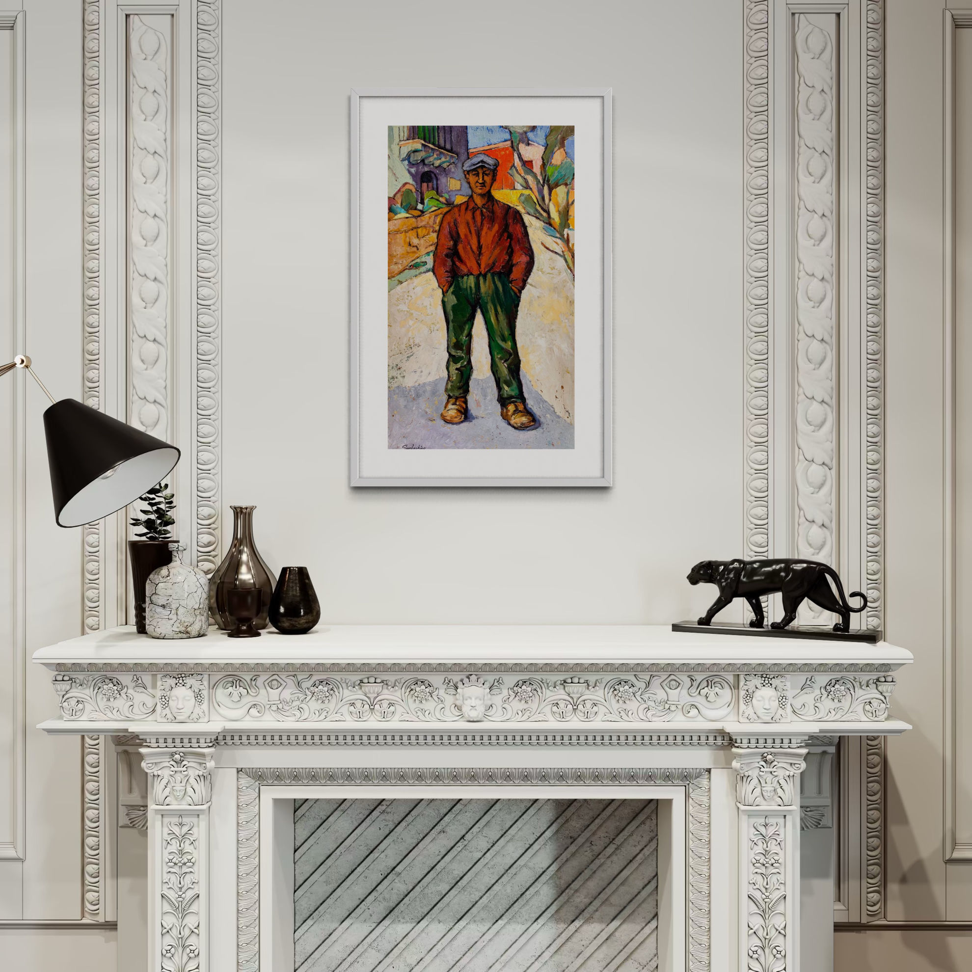 Appare tutta compresa nei volti, nei gesti, nei luoghi, la lunga appartenenza di Gianbecchina alla pittura: nella sua opera l'uomo e l'artista si identificano con intrinseca nobiltà del reale, umano o geografico che sia, in maniera simbiotica e allo stesso tempo libera, senza nessuna convenzione. La fierezza del paesaggio, del pescatore e del contadino nasce dal suo orgoglio di artista e di siciliano. I suoi contadini posseggono la dignità petrosa delle montagne, sono padroni del proprio sudore, hanno la terra sotto i piedi e il cielo sopra la testa. Nel mondo dell'arte, è difficile trovare un artista più sincero di Gianbecchina, poiché quando dipinge l'intera sua anima è sulla tela. Bellissima opera unica, olio su masonite, di Gianbecchina del 1950 dal titolo "Un contadino" firmata sul fronte in basso a sinistra e nel retro.