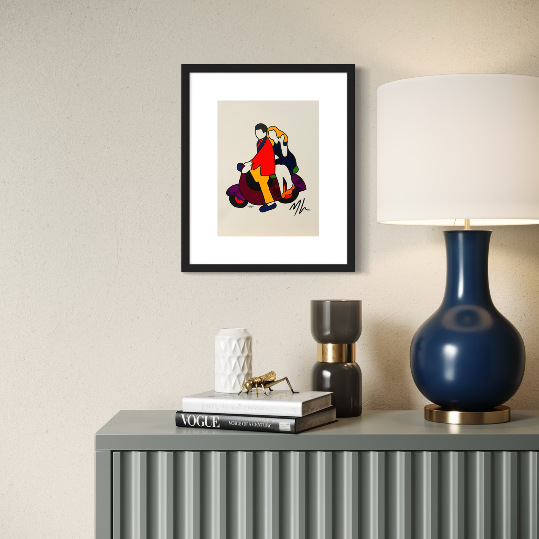 L’ultima serie di serigrafie di Marco Lodola celebra con vivacità e leggerezza l’immaginario iconico che da sempre contraddistingue la sua arte. I protagonisti sono riletti attraverso il consueto stile luminoso e stilizzato dell’artista. Le sagome, dai colori piatti e accesi, si stagliano su fondi neutri o intensamente saturi, evocando movimento, energia e spensieratezza.